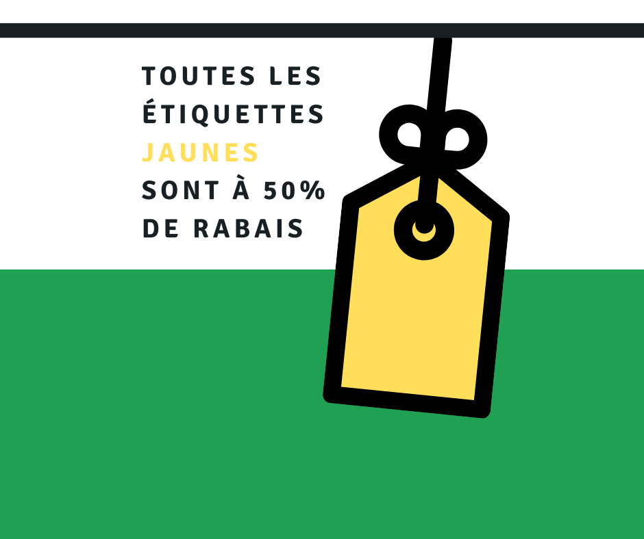 Toutes les étiquettes jaunes à la friperie sont à 50 % de rabais! 🏷️