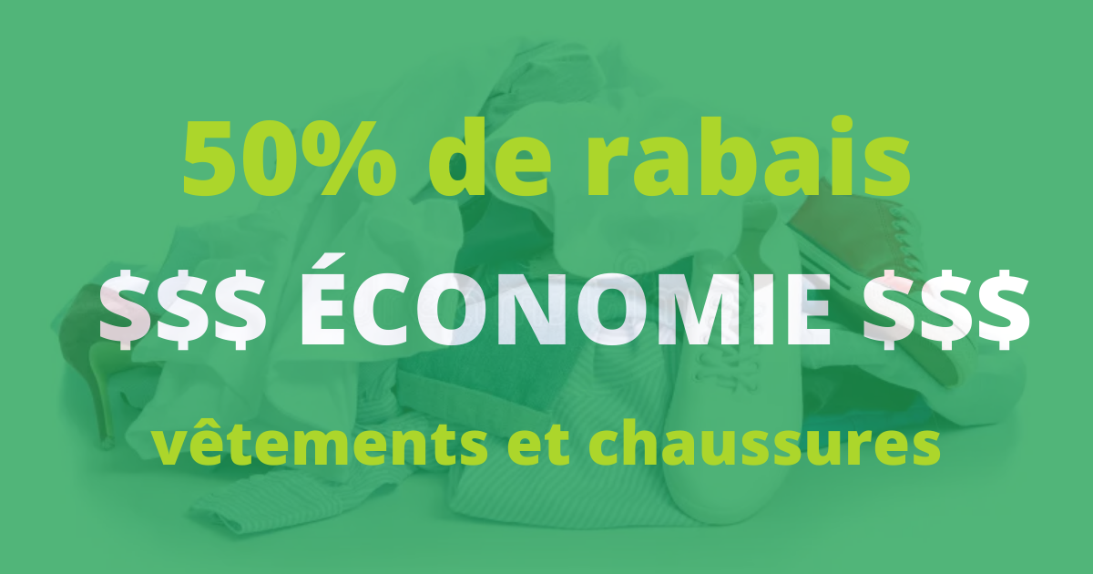 Tous les vêtements et toutes les chaussures seront à 50% de rabais à la friperie et au comptoir, et ce pour tout le mois d’août.
